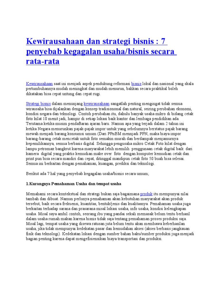 Kewirausahaan dan strategi bisnis 7 penyebab kegagalan