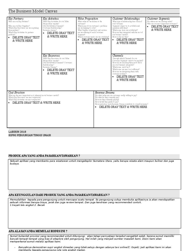 Contoh bisnis model canvas travel oktober 19, 2018nusa7 travel2 comments Diantara tools yang banyak digunakan dalam menganalisis ide bisnis adalah analisis swot dan bisnis model canvas. Target bisnis adalah semua kalangan.