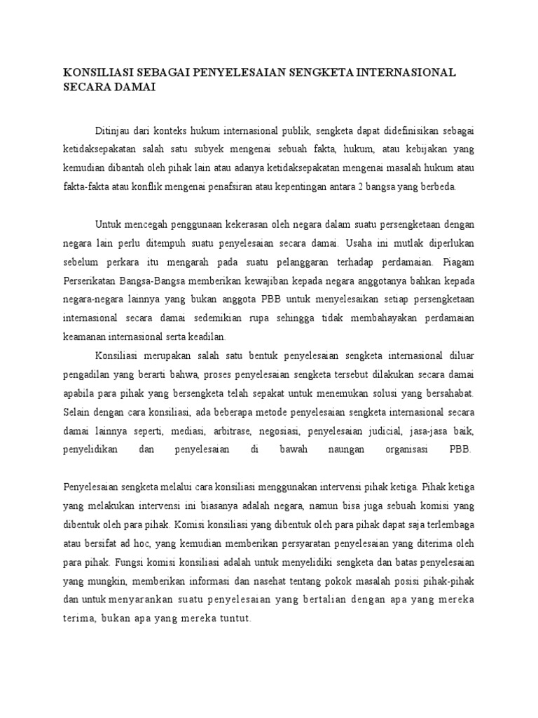 Konsiliasi Sebagai Penyelesaian Sengketa Internasional