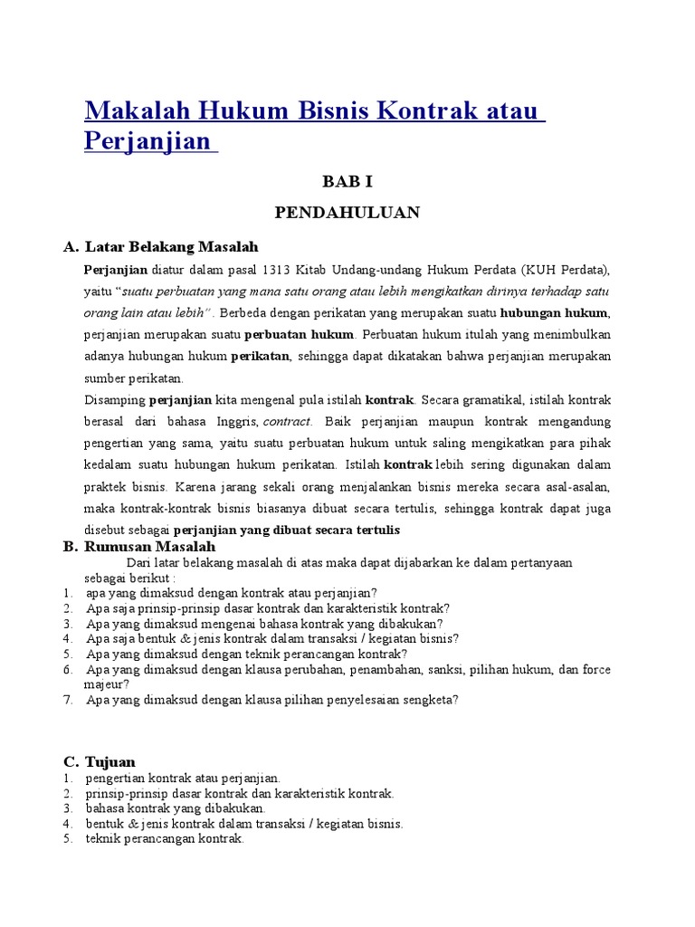 Contoh Makalah Hukum Bisnis Tentang Kontrak