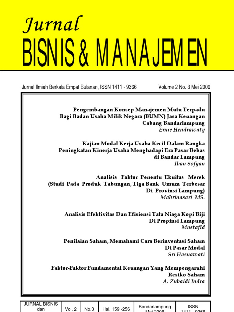 Klik di sini untuk informasi file lengkap kumpulan jurnal manajemen bisnis pdf selengkapnya. Jurnal bisnis dan manajemen covers the areas of financial management science, human resource management, marketing management, and strategic management it also covers the field of entrepreneurship.
