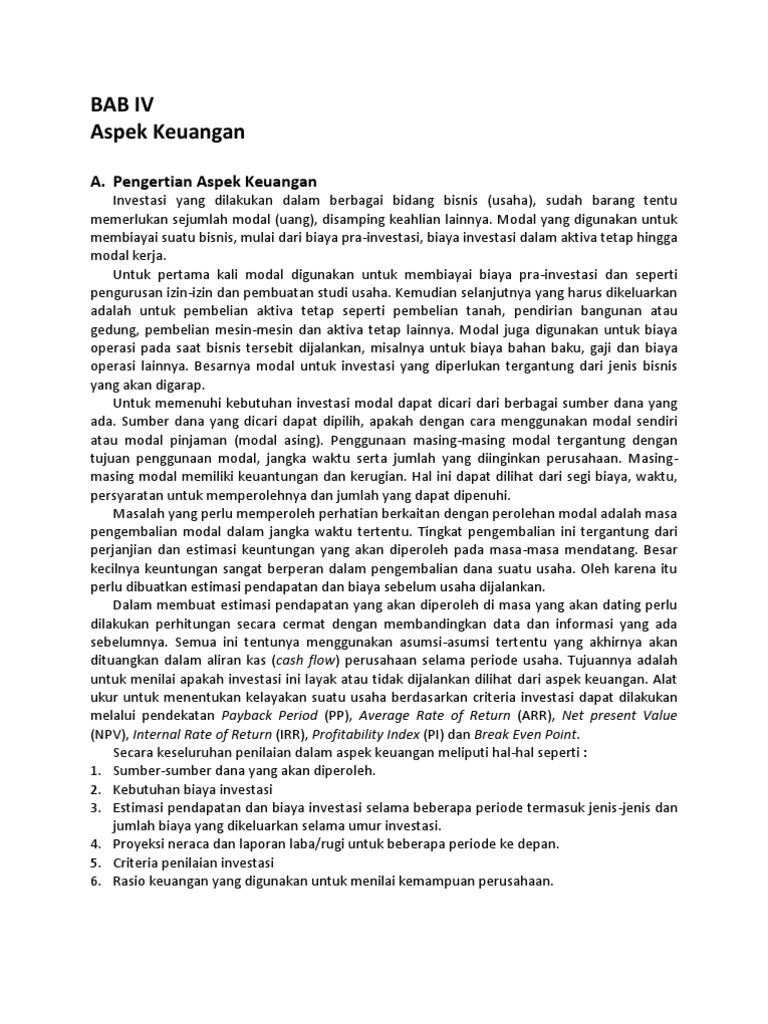 Contoh Soal Aspek Keuangan Dalam Studi Kelayakan Bisnis